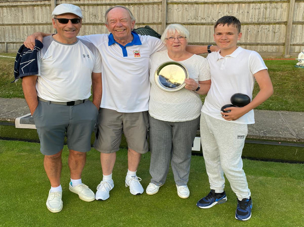 The victors, team blue, consisted of Tyler, Jenny, Barry and skip Chris who won on a thrilling tie break, single end with the last bowl of the day allowing them to win by one. New player Tyler our youngest member at just 14 will join the other three with his name on the boards having just signed up in June. We all hope this is the start of many wins for Tyler and the rest of the team over the coming years.